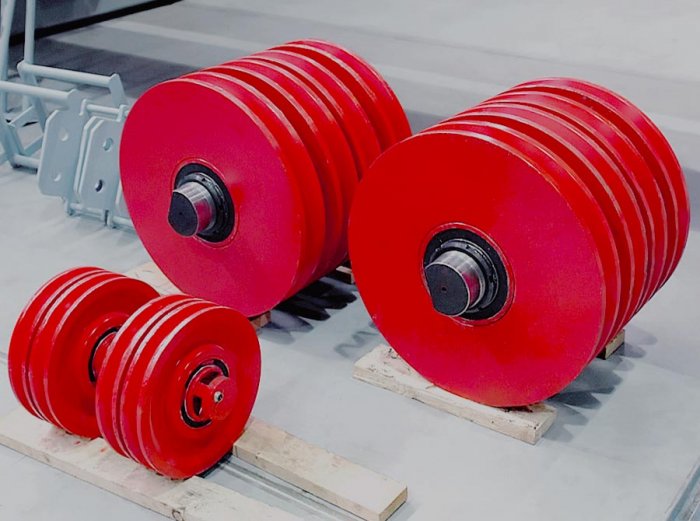Запасные части для грузоподъемного оборудования Колеса крановыеКолеса крановые в сбореБлоки обводныеБуксы крановыеКрюковые подвескиКрюки грузовые в сбореМуфты зубчатыеШкивы тормозныеБарабаны крановыеШтамповка колеса кранового